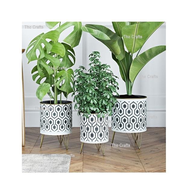 ชุดกระถางต้นไม้สามใบพร้อมขาตั้งสีทองกระถางต้นไม้สำหรับตกแต่งมีขนาดแตกต่างกัน