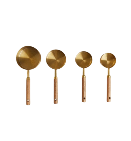 ถ้วยตวงด้ามจับไม้ขนาดแตกต่างกันถ้วยตวงถ้วยตวงโลหะสำหรับทำอาหารและอบเครื่องมือทำครัวที่บ้าน