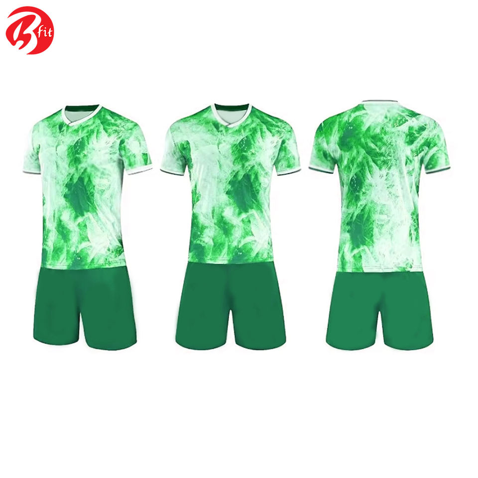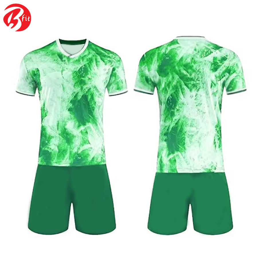 ชุดเล่นฟุตบอลของผู้ชายเสื้อ100% ทีมเสื้อทีมเสื้อทีมแขนสั้นทำจากโพลีเอสเตอร์สไตล์ที่แตกต่าง