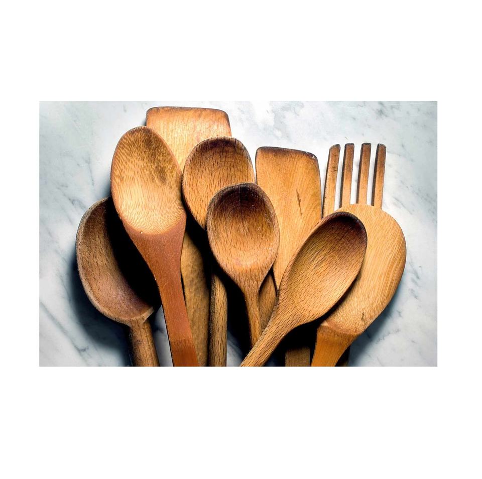 ช้อนไม้ชุดรูปแบบที่แตกต่างกันของตกแต่งห้องครัวร้านอาหารและโรงแรมมีดธรรมชาติที่มีการออกแบบตกแต่งทาสี