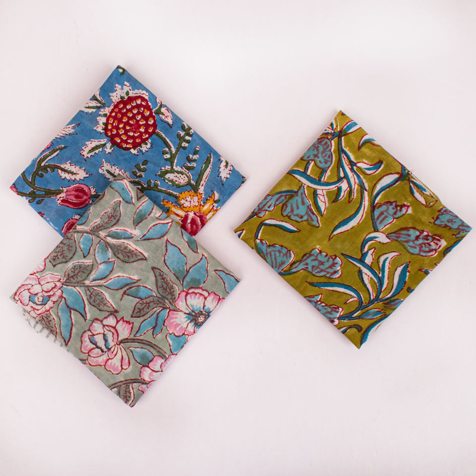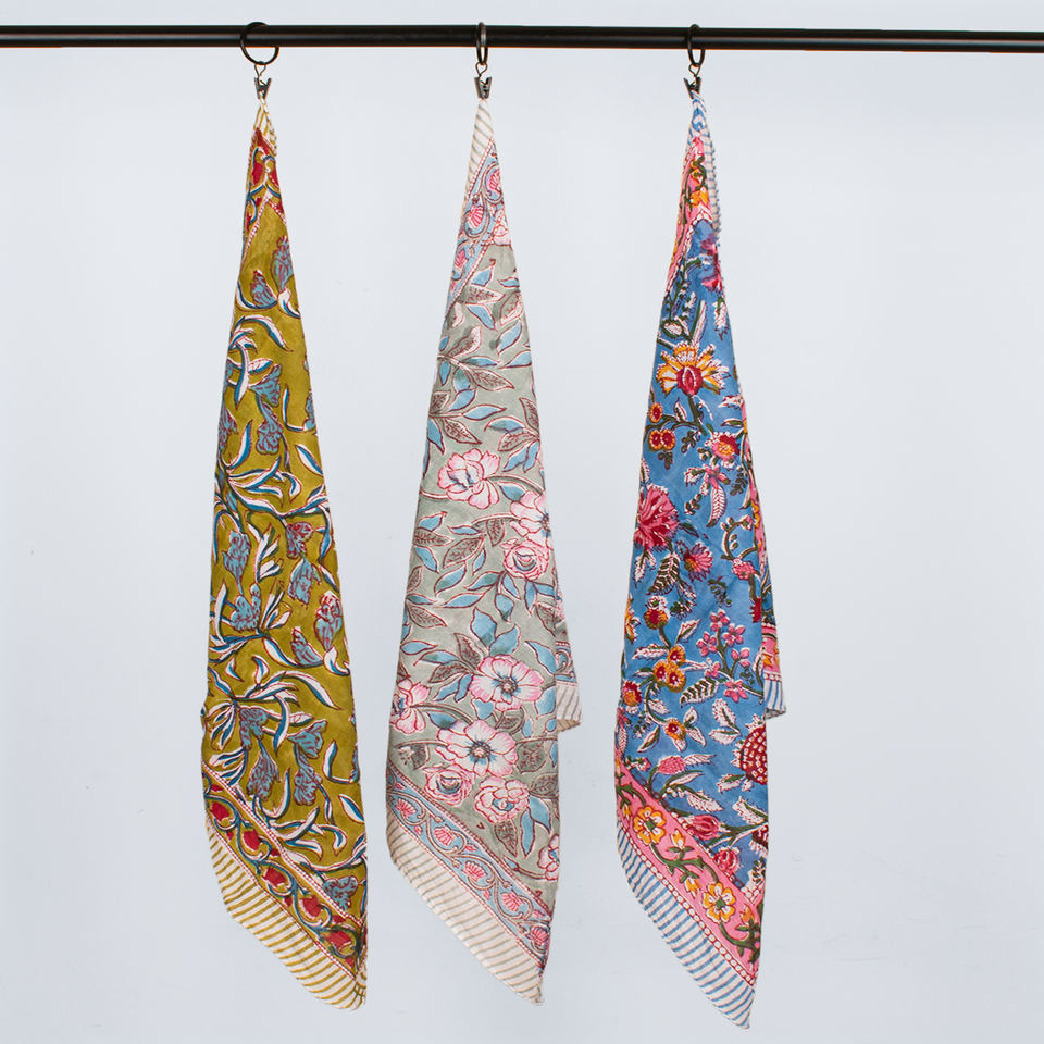 ผ้าพันคอผ้าฝ้ายพิมพ์ลายดอกไม้แบบบล็อกพิมพ์ด้วยมือ ลวดลายไม่ซ้ำใคร เป็นมิตรกับสิ่งแวดล้อม ระบายอากาศได้ดี ยืดหยุ่นได้ ใช้ได้ทุกฤดู เหมาะสำหรับทุกเพศ