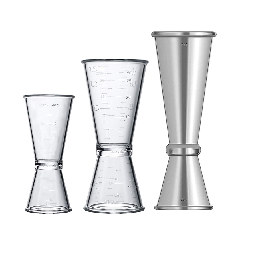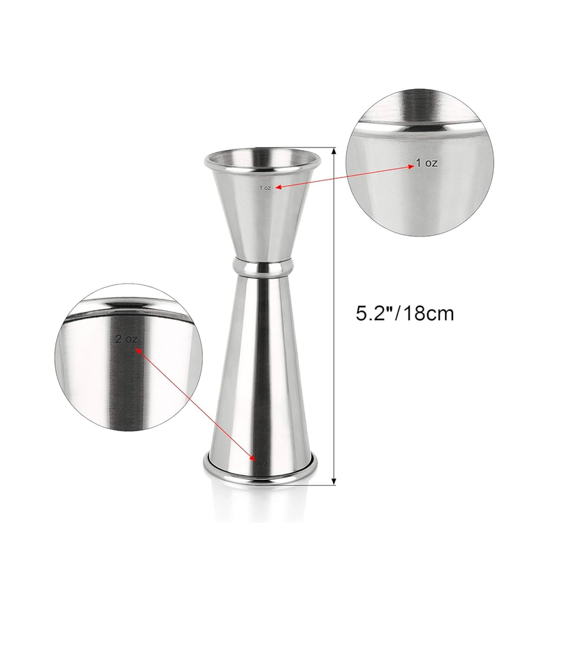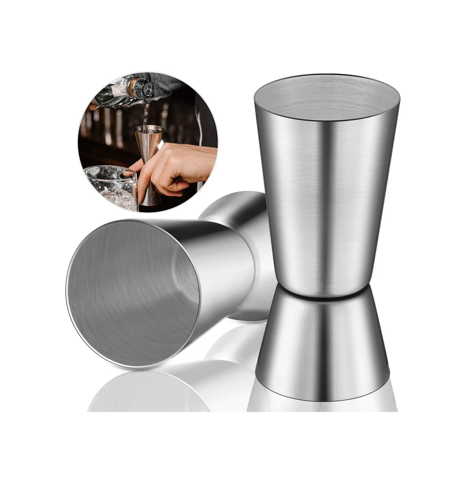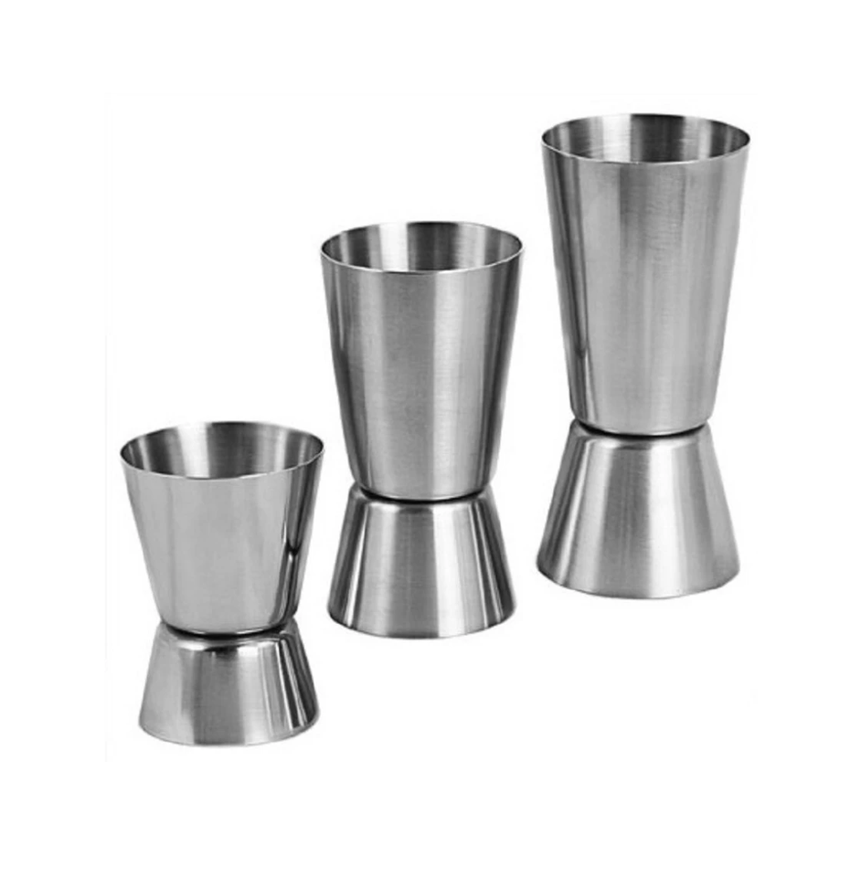 แก้วจิ๊กเกอร์ทำจากสเตนเลสสตีลขัดเงาพร้อมที่จับสไตล์การออกแบบที่แตกต่างกัน