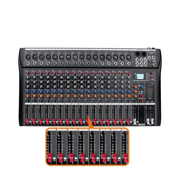 เครื่องผสมเสียง16ช่องสัญญาณไร้สายแบบดิจิตอลสำหรับสตูดิโอถ่ายทอดสดคอนโซลเสียงบอร์ดผสมพลังงาน USB (110V 220V)