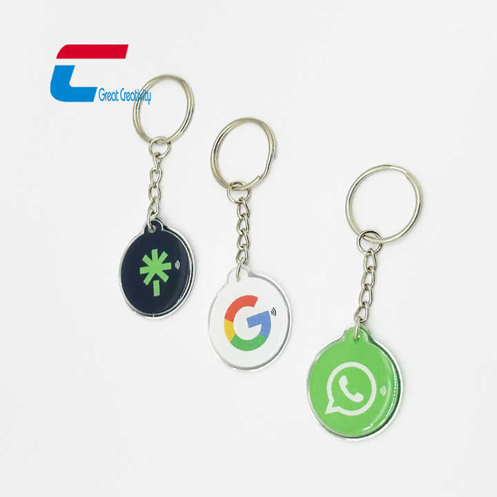 พวงกุญแจอีพ็อกซี่ NFC นามบัตรดิจิทัลแบบ NTAG216พร้อมโซ่โลหะ