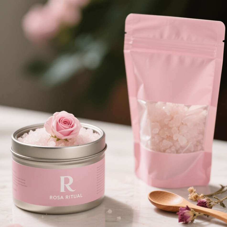ซองพลาสติกแบบตั้งได้ พิมพ์ลายดิจิตอล CMYK สำหรับบรรจุภัณฑ์ผลิตภัณฑ์ดูแลผิว เกลืออาบน้ำ ขนาด 16 ออนซ์ พร้อมหน้าต่าง