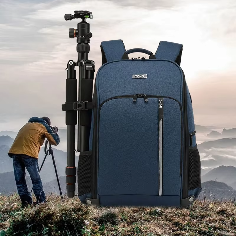 กระเป๋าเป้สะพายหลังสำหรับกล้องดิจิตอล กระเป๋าใส่กล้องมิเรอร์เลสแบบหรูหรา พร้อมไฟ LED กันน้ำ ทำจากผ้า Oxford มีที่ยึดขาตั้งกล้อง สำหรับใช้งานกลางแจ้ง