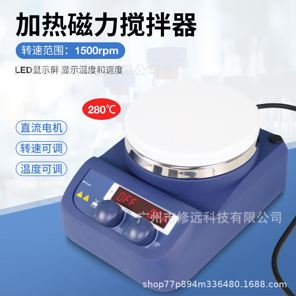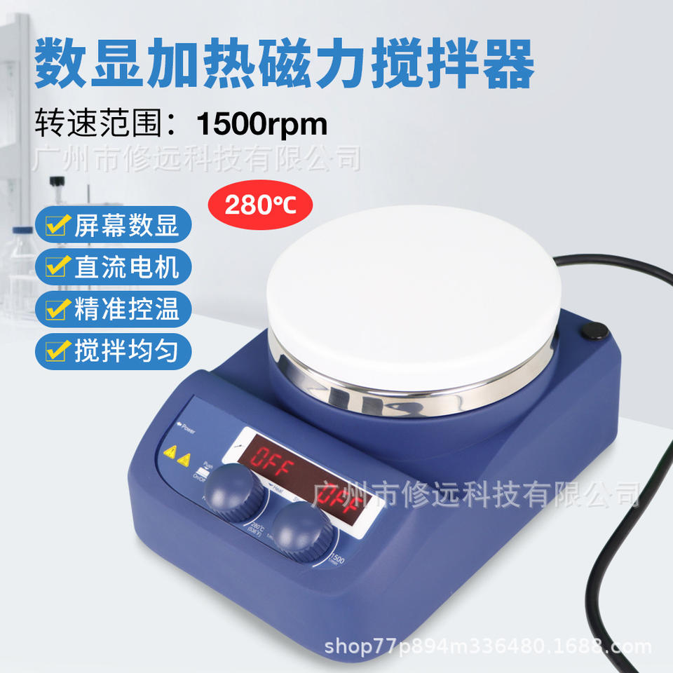 เครื่องกวนสารแม่เหล็กแบบดิจิตอลพร้อมจอแสดงผล ความร้อน 280 องศาเซลเซียส สำหรับผสมสารในห้องปฏิบัติการ ความเร็ว 1500 รอบต่อนาที