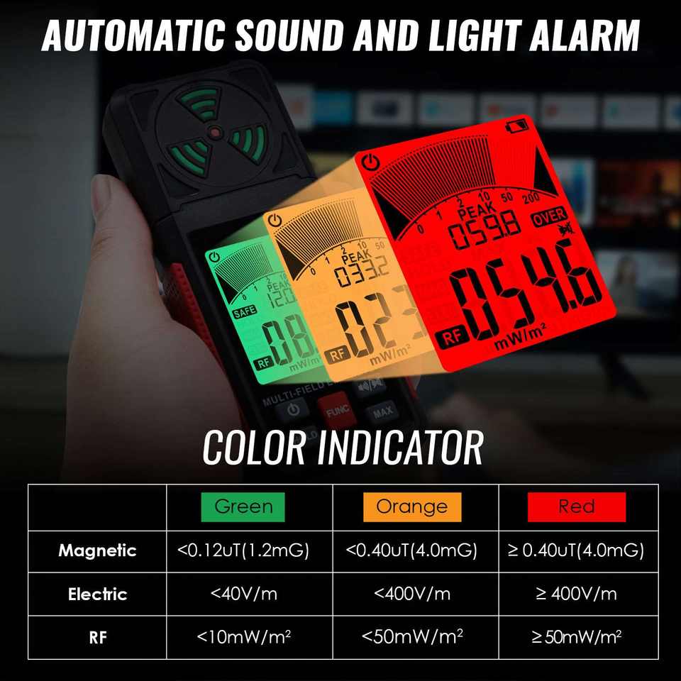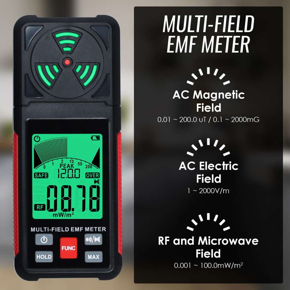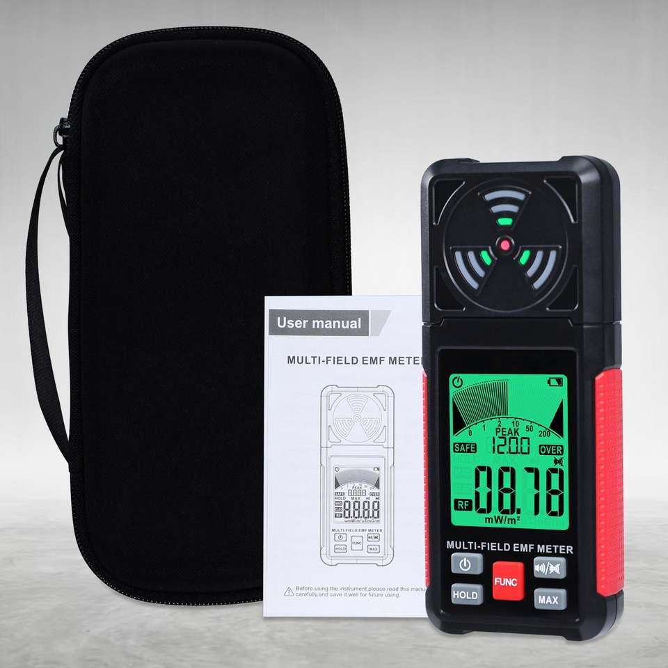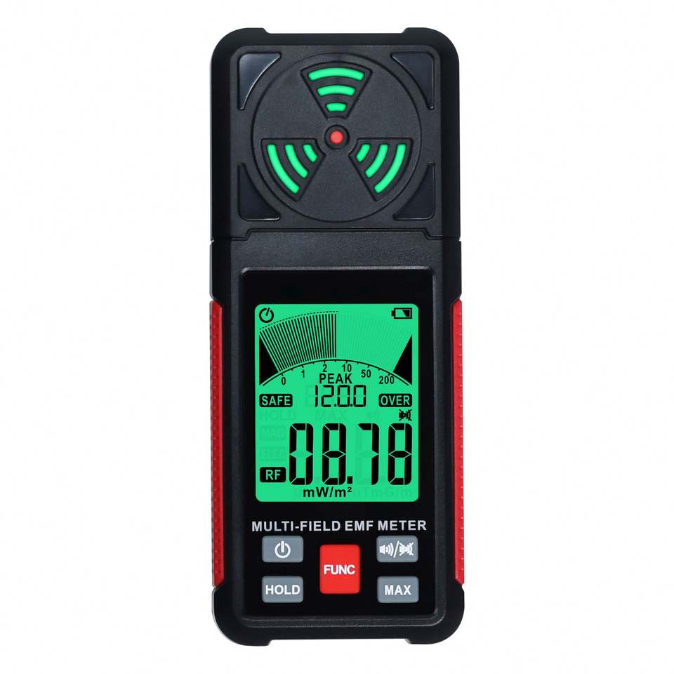 เครื่องตรวจจับสนามแม่เหล็กไฟฟ้าคุณภาพสูงแบบดิจิตอล ฟังก์ชั่นเก็บข้อมูลการตรวจจับ EF RF MF เครื่องวัด EMF 3 แกน สำหรับบ้าน โรงเรียน สำนักงาน