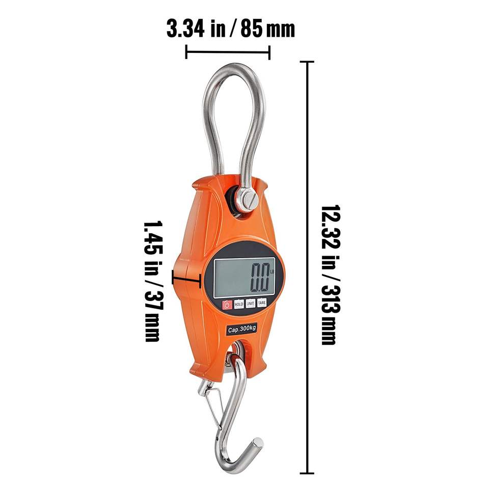 เครื่องชั่งเครนอุตสาหกรรมดิจิตอลแบบพกพา รับน้ำหนักได้ 660 ปอนด์/300 กิโลกรัม ตัวเครื่องอะลูมิเนียมหล่อ พร้อมหน้าจอ LCD