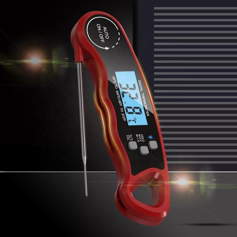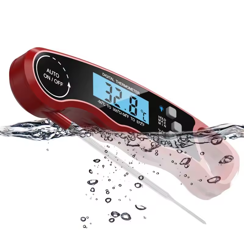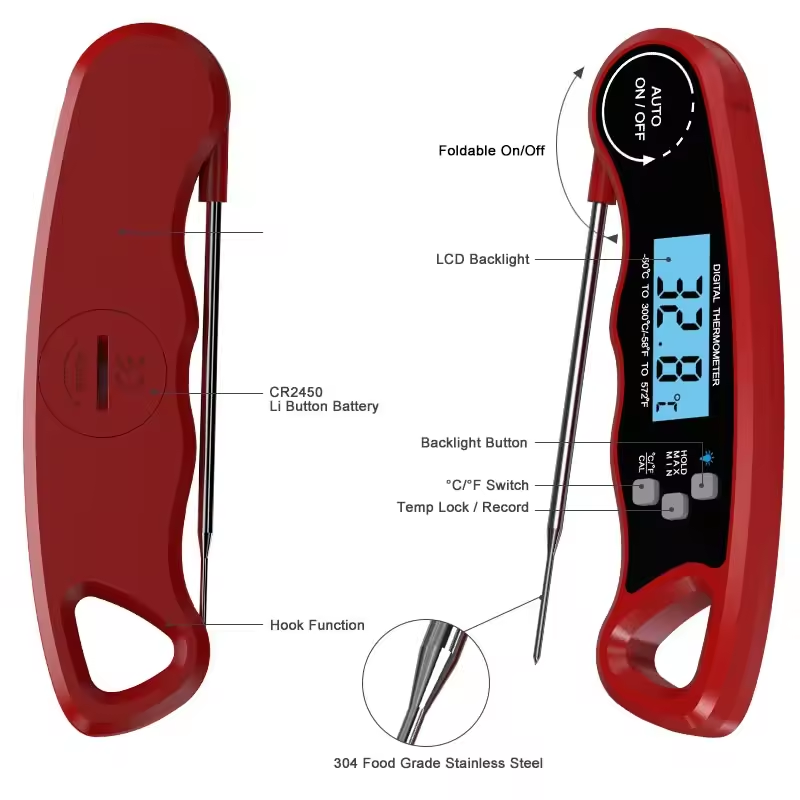 เทอร์โมมิเตอร์อ่านได้ทันทีดิจิตอลสำหรับห้องครัวบาร์บีคิวกันน้ำเกรดอาหารเตาอบสแตนเลส