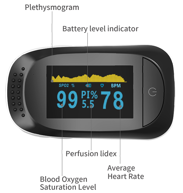 เครื่องวัดออกซิเจนในเลือดเครื่องวัดออกซิเจนในเลือดสำหรับเด็กจอแสดงผล OLED แบบดิจิตอล