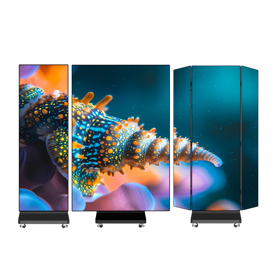 Digital P2.5 P2 GOB folding indoor double-sided three-lumen diode tri-fold poster, foldable LED screen display