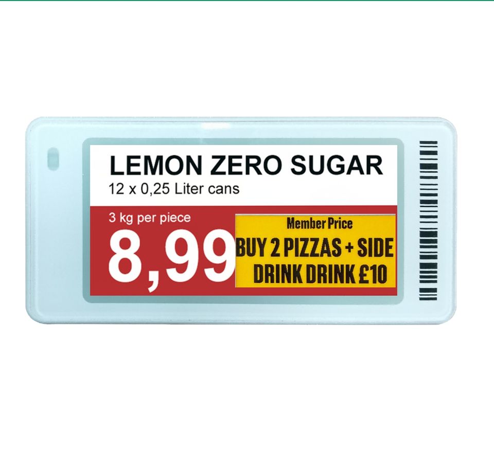 ป้ายราคาดิจิทัลพร้อมโลโก้ขนาด2.13นิ้ว ESL ป้ายหิ้งอิเล็กทรอนิกส์รองรับโรงงานกำหนดเอง4สีอีหมึก