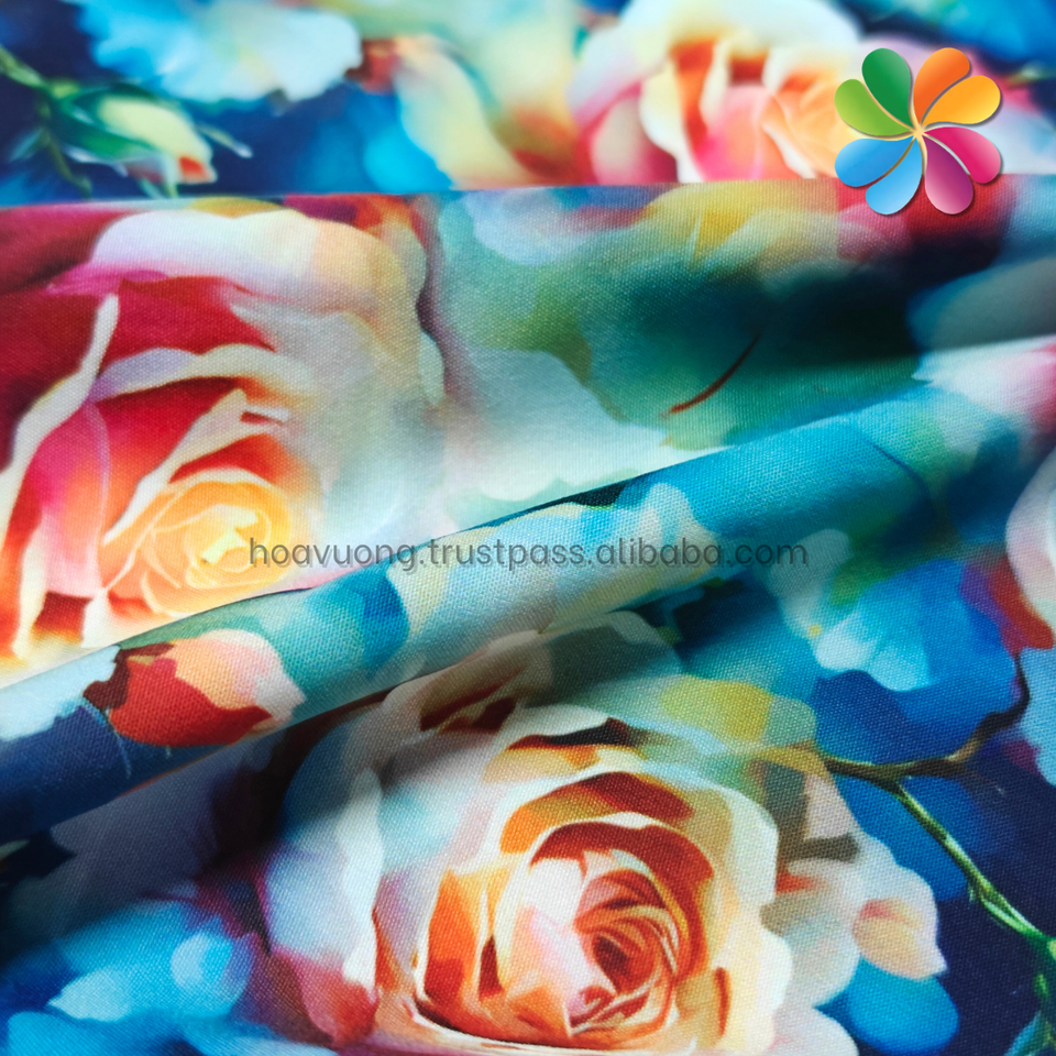 ผ้าไหมพิมพ์ดิจิตอลลายดอกไม้100D 3D วัสดุนุ่มระบายอากาศเรียบ OEM & ODM