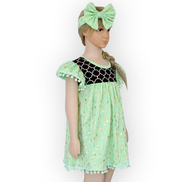 ชุดเดรสเด็กผู้หญิงพิมพ์ลายลูกศรแบบดิจิทัล ปรับแต่งได้ แขนระบาย ชุดฤดูร้อน