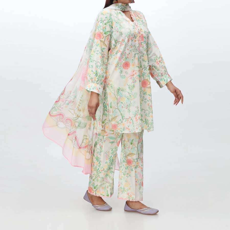 Pret Digital Printed Cambric Cream Women's Blazers 3-PC Suit Size S PS4363