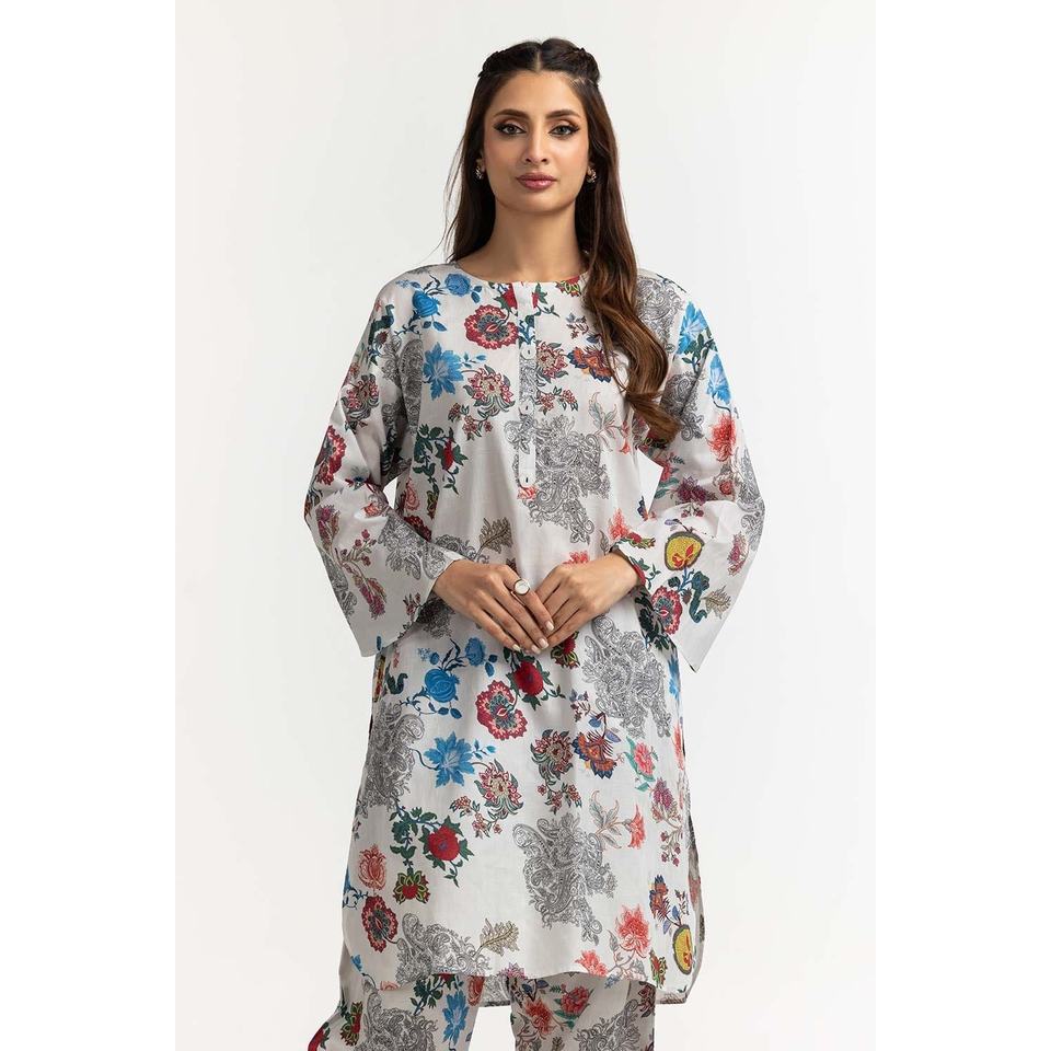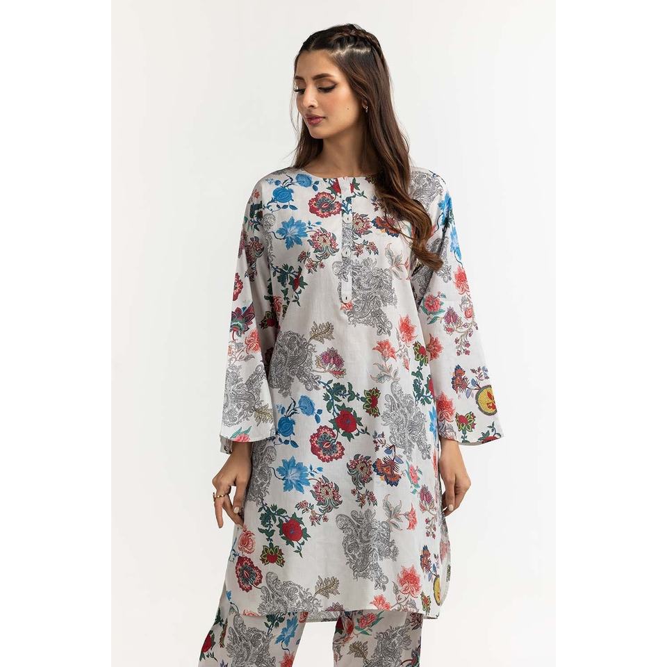 ชุดเสื้อและกางเกงผ้าด็อบบี้พิมพ์ลายดิจิทัล พร้อมตกแต่งกระดุม IPS-24-11