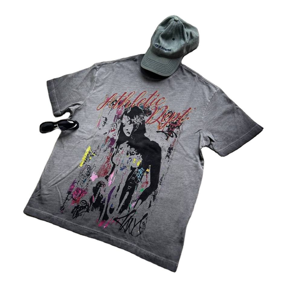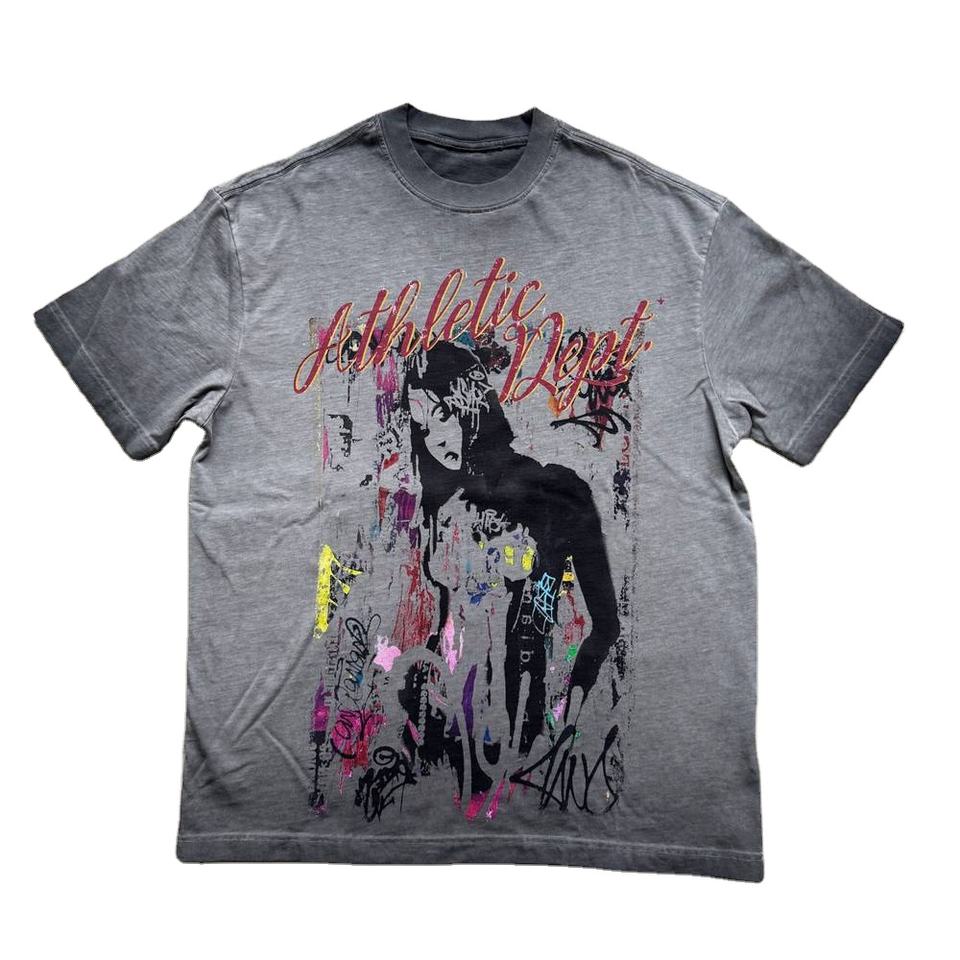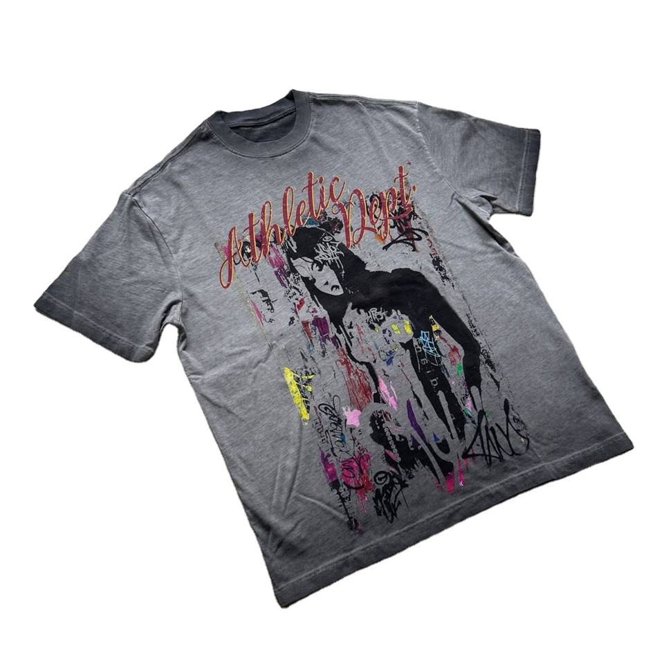 เสื้อยืดพิมพ์ลายดิจิตอลขนาดใหญ่กว่า260กรัมเสื้อยืดตัวอักษรสั้นข้ามพรมแดนอินเทรนด์บาสเก็ตบอลซักสไตล์วินเทจ
