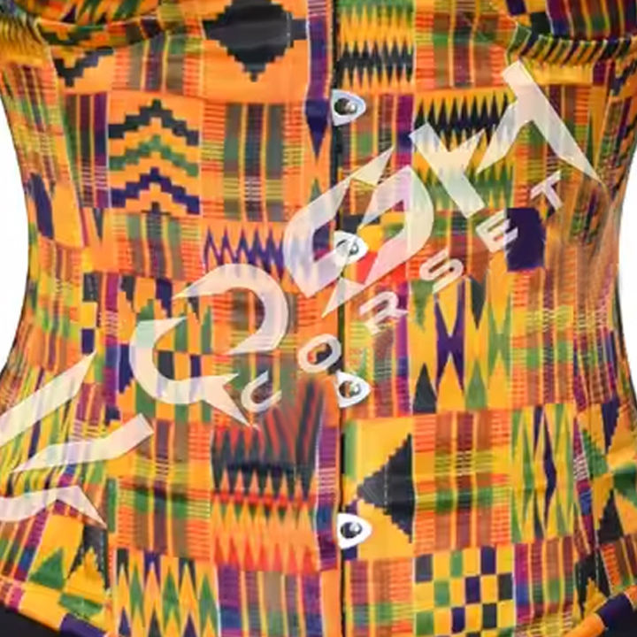 ชุดกระชับสัดส่วนแบบมีโครงเหล็ก ทรงโอเวอร์บัสต์ ผ้าซาตินพิมพ์ลายเค็นเต้ด้วยระบบดิจิตอล กระชับแน่นพิเศษ ไซส์พลัส แฟชั่น