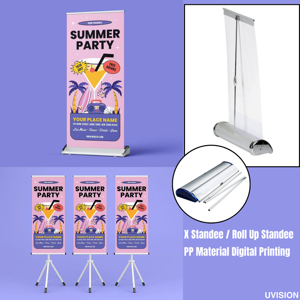 ป้ายโฆษณาดิจิตอลพิมพ์บนแผ่นพีพี พร้อมขาตั้งแบบ X / ขาตั้งแบบม้วนเก็บได้ ป้ายโฆษณาแบบพกพา
