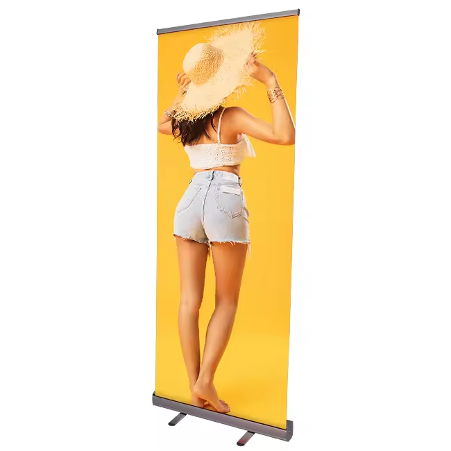 ชั้นวางจอแสดงผลแบบพกพาพิมพ์ดิจิตอลแบบหรูหราประเภทหยดน้ำอลูมิเนียมม้วนแบนเนอร์พร้อมวัสดุพีวีซี