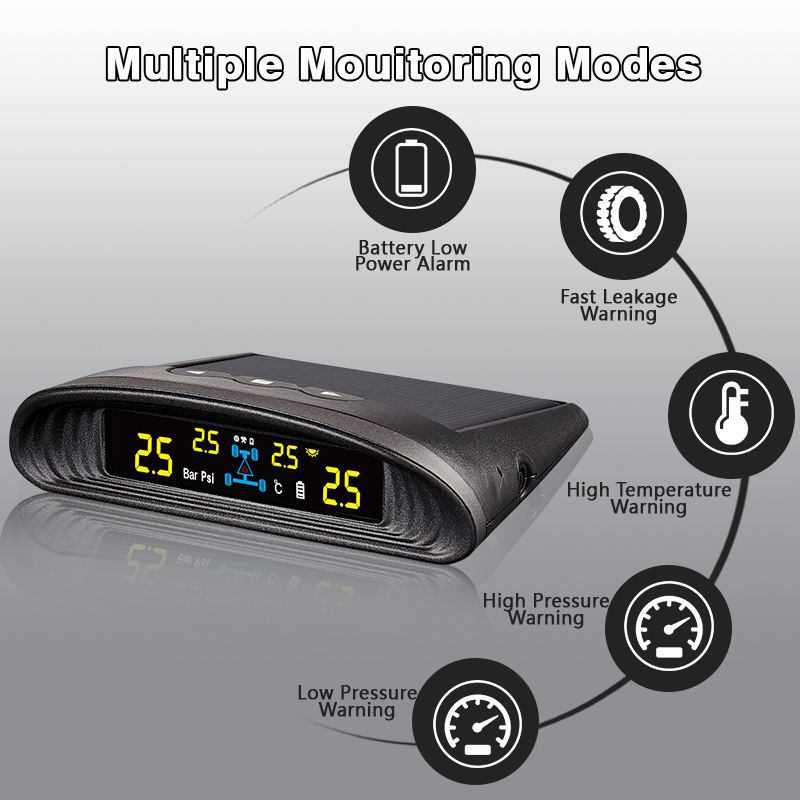 เครื่องตรวจสอบแรงดันลมยางรถ433.92 MHz ระบบ TPMS พลังงานแสงอาทิตย์