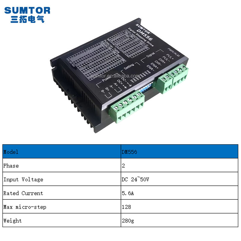 ไดรเวอร์สเต็ปเปอร์ดิจิตอล DM556 5.6A อะไหล่เครื่องพิมพ์ 3 มิติ ชุดไดรเวอร์มอเตอร์สเต็ปเปอร์ CNC ความเร็วต่ำ ทำงานราบรื่น ไมโครสเต็ป ไดรเวอร์ 2 เฟส