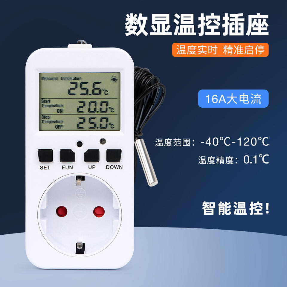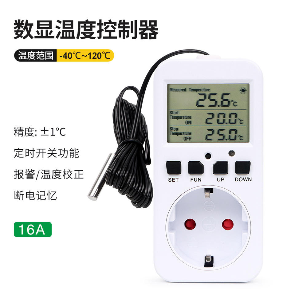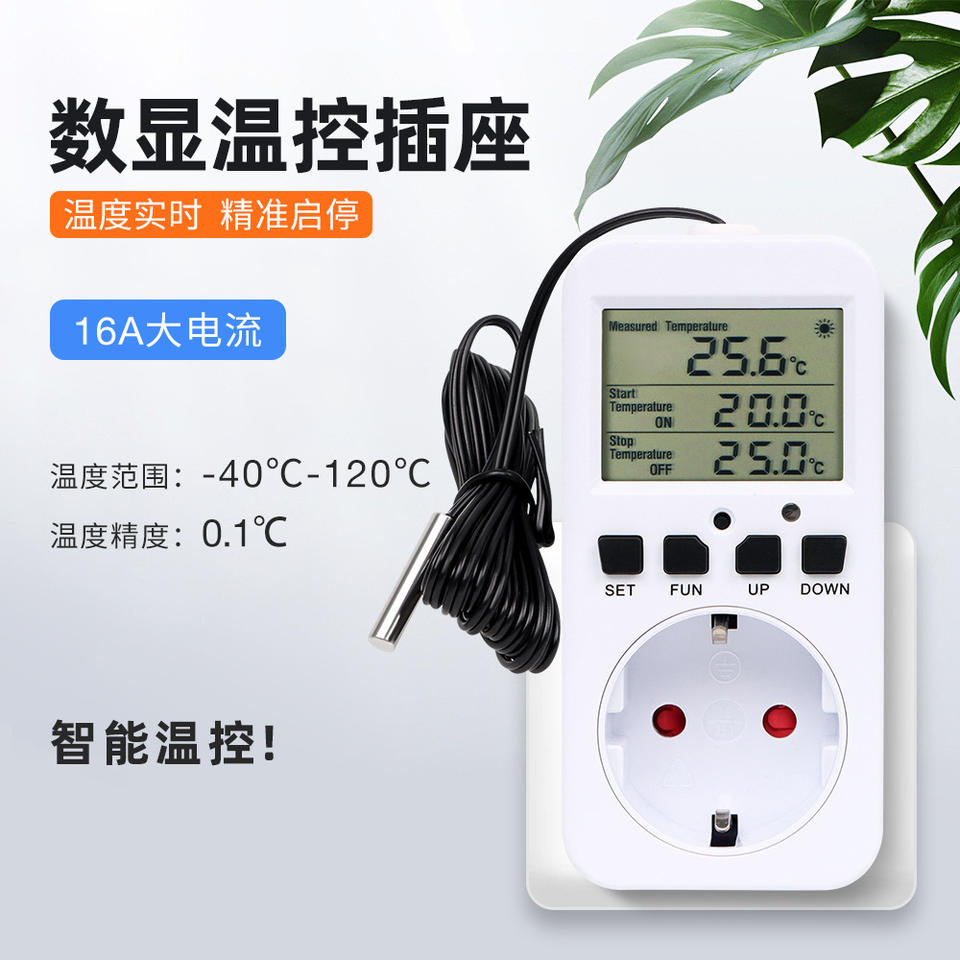 ซ็อกเก็ตควบคุมอุณหภูมิแบบดิจิตอลมาตรฐานยุโรป 220-240V สำหรับตู้เย็นตู้ปลาเครื่องทำความร้อนสำหรับสัตว์เลี้ยง