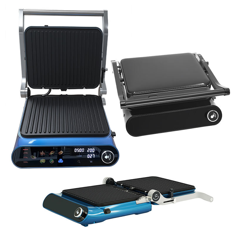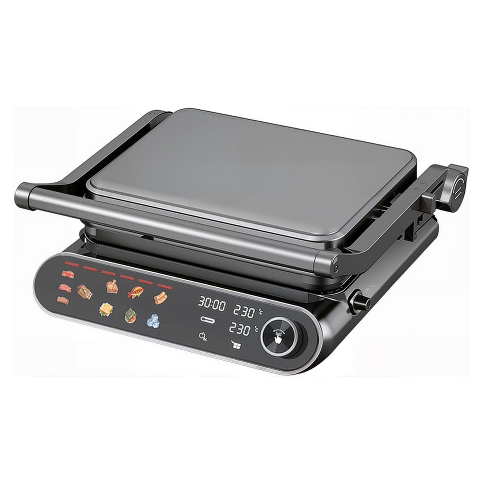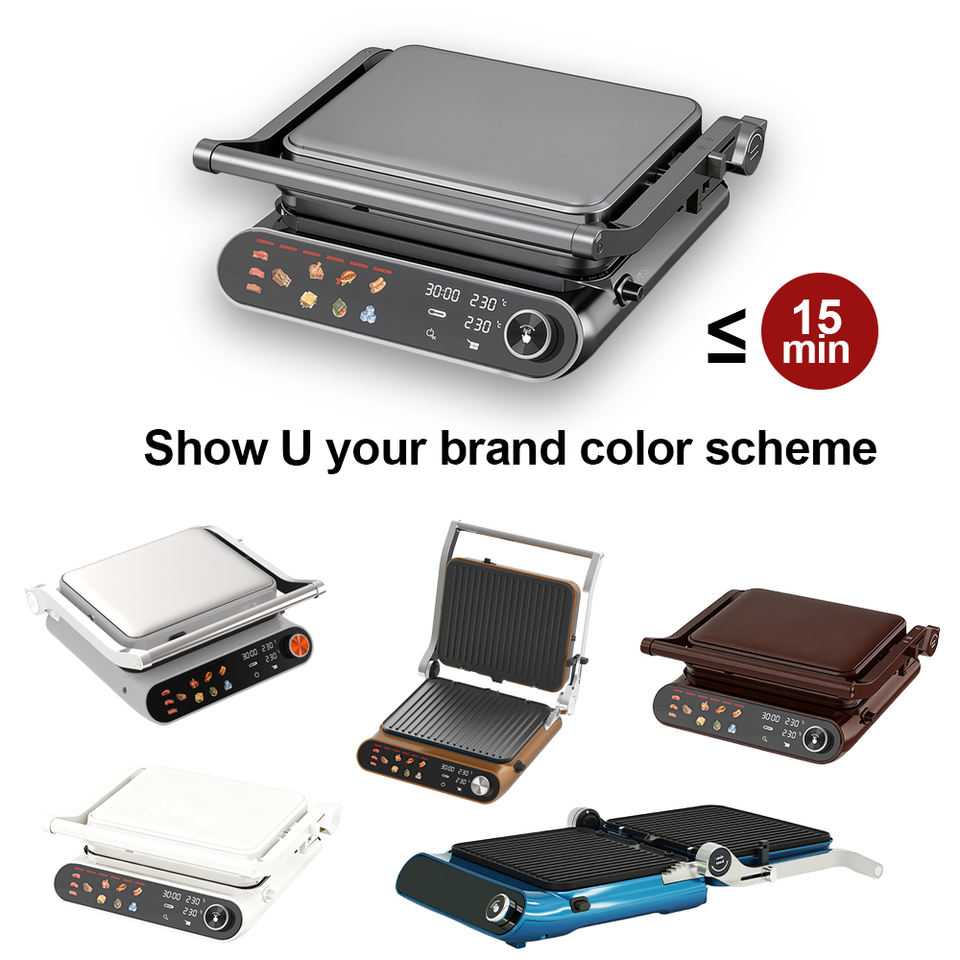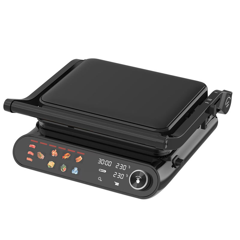 ลักษณะ:180องศาเปิดพื้นผิวเรียบไม่ติด, ควบคุมอุณหภูมิแบบปรับได้พร้อมจอแสดงผลดิจิตอล, ทำความสะอาดง่าย, บาร์บีคิวครอบครัว, ไม่ติด