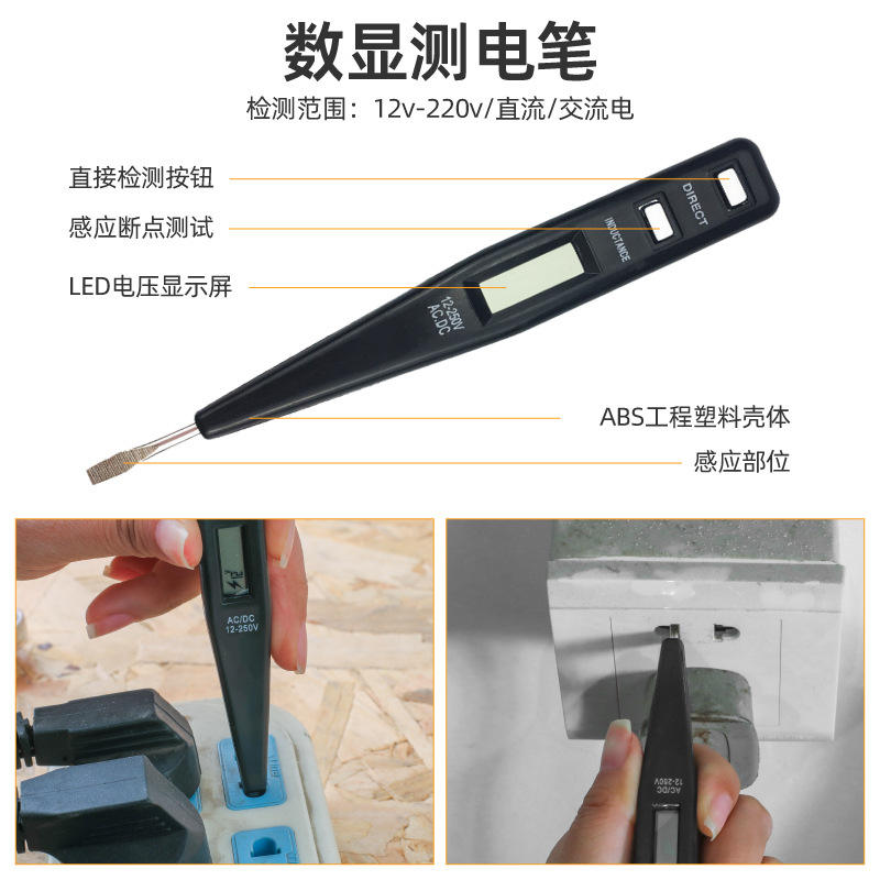 เครื่องตรวจจับแรงดันไฟฟ้า AC DC 12V 250V พร้อมจอแสดงผล LED สำหรับทดสอบไฟฟ้า