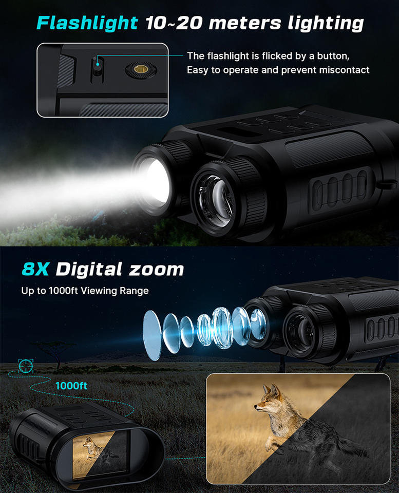 กล้องส่องทางไกลดิจิตอลซูม 8 เท่า ความละเอียด 1080P พร้อมอินฟราเรดมองกลางคืนแบบดิจิตอล สำหรับการล่าสัตว์และตั้งแคมป์