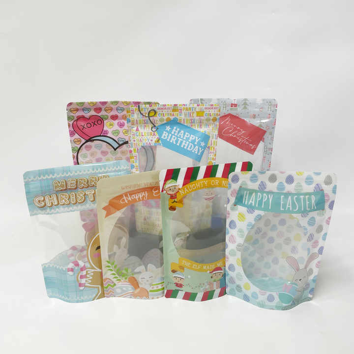 กระเป๋า Ziplock พลาสติกพิมพ์ลาย,ถุงอาหารพิมพ์ลายแบบกำหนดเองได้พร้อมช่องใสสำหรับใส่ลูกกวาด