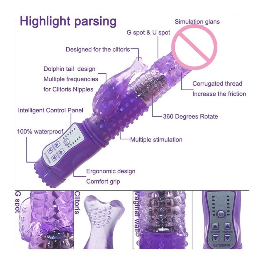 ดิ๊กโด้ แรบบิท ไวเบรเตอร์ เครื่องช่วยสำเร็จความใคร่ กระตุ้นจุดจี 12 ระดับความเร็ว ระบบสั่นสะเทือน มอเตอร์คู่ นวดกระตุ้นคลิตอริส หมุนได้ ของเล่นทางเพศสำหรับผู้หญิง