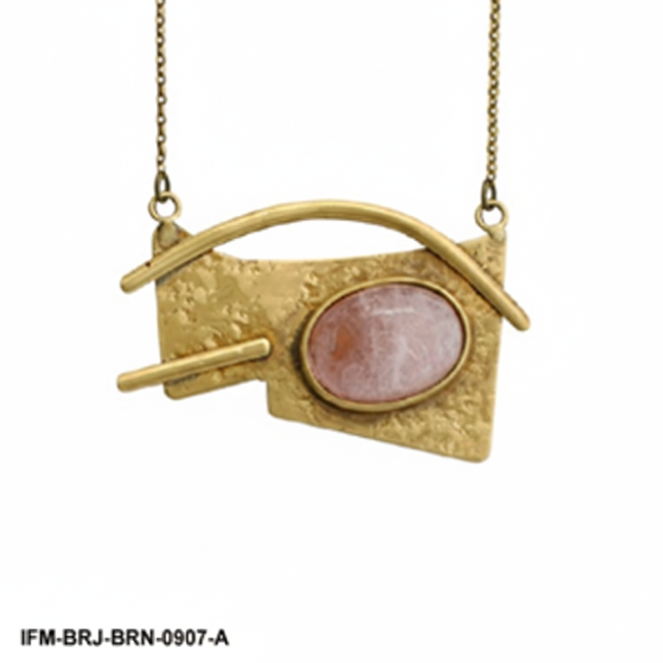 จี้โรสควอตซ์แท้จากดิลลี่ หินสีชมพูธรรมชาติในตัวเรือนทองเหลืองขัดผิวแบบออกซิไดซ์ สร้อยคอทำมือสำหรับผู้หญิง
