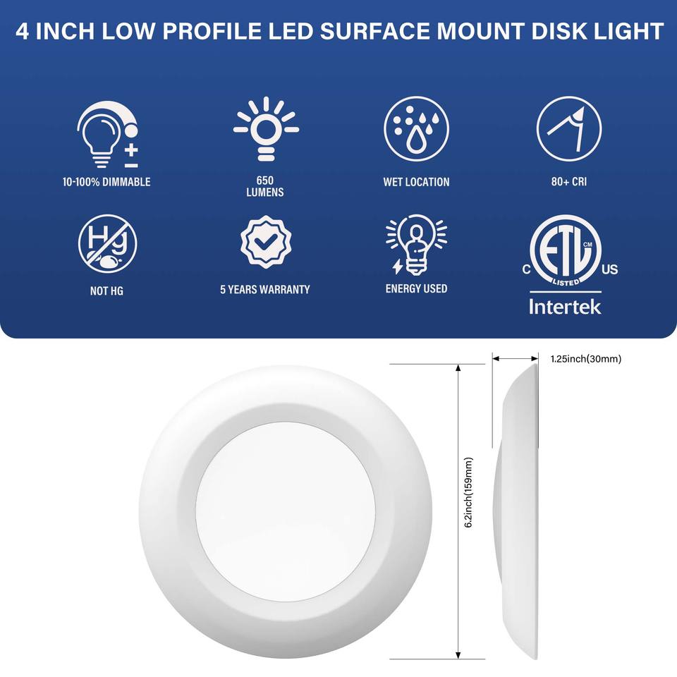 ไฟดิสก์ LED 10 วัตต์ ปรับความสว่างได้ ขนาด 4 นิ้ว แบบติดตั้งบนพื้นผิว สำหรับเพดาน
