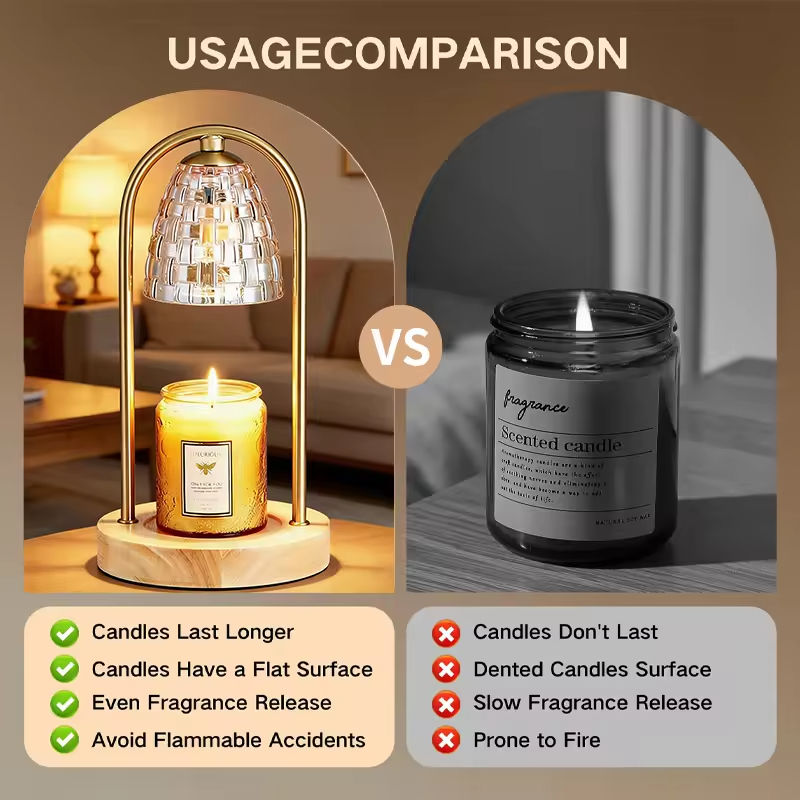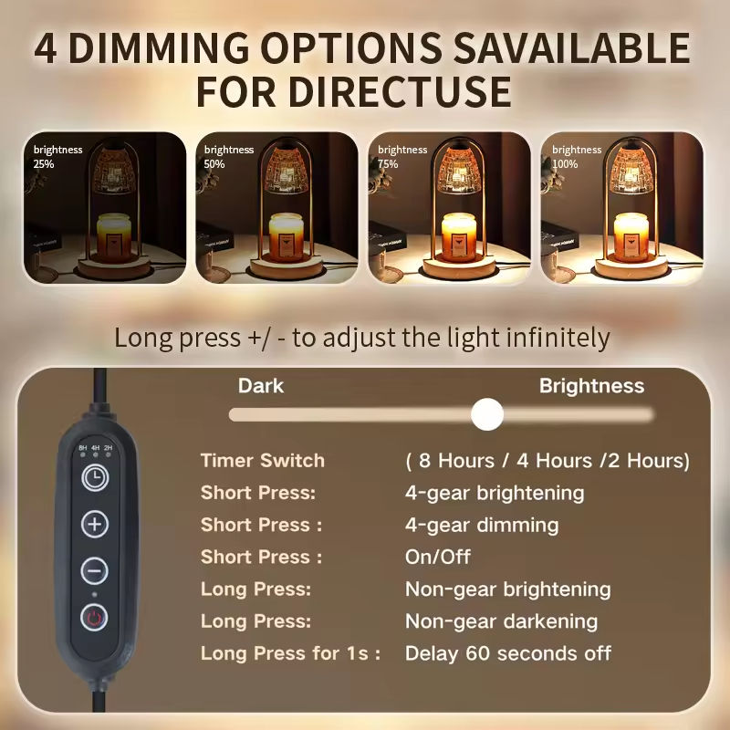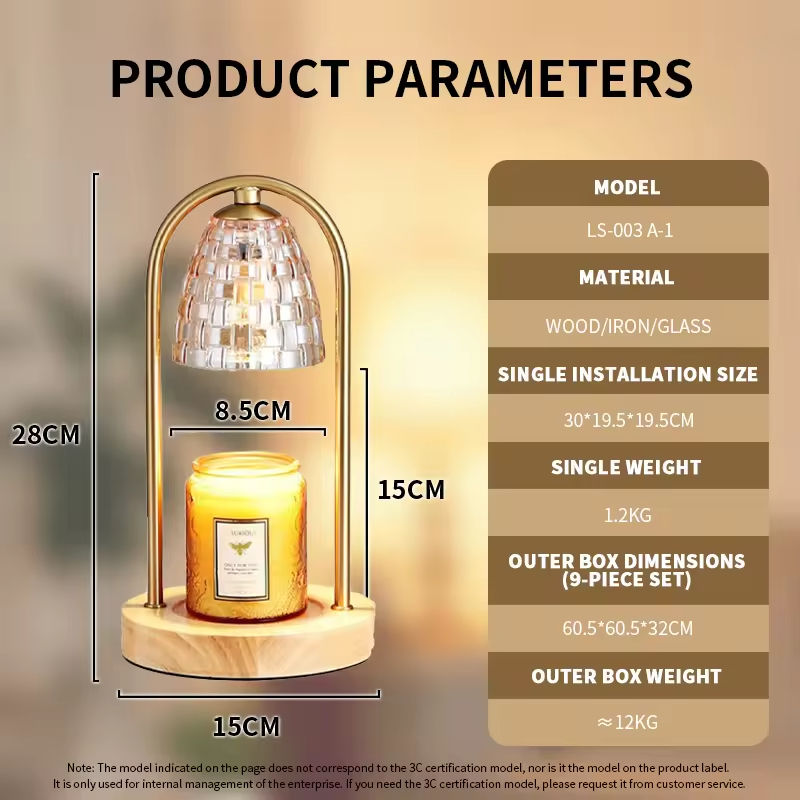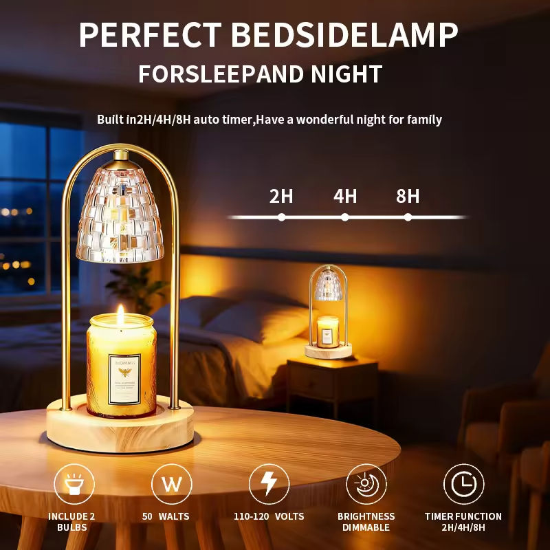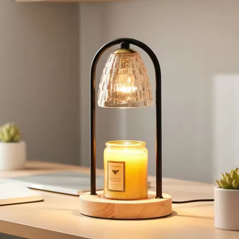 โคมไฟอุ่นเทียนแก้วฐานไม้แบบหรี่แสงได้ สำหรับให้ความร้อนแก่เทียนหอมและตกแต่งบ้านและห้องนอน