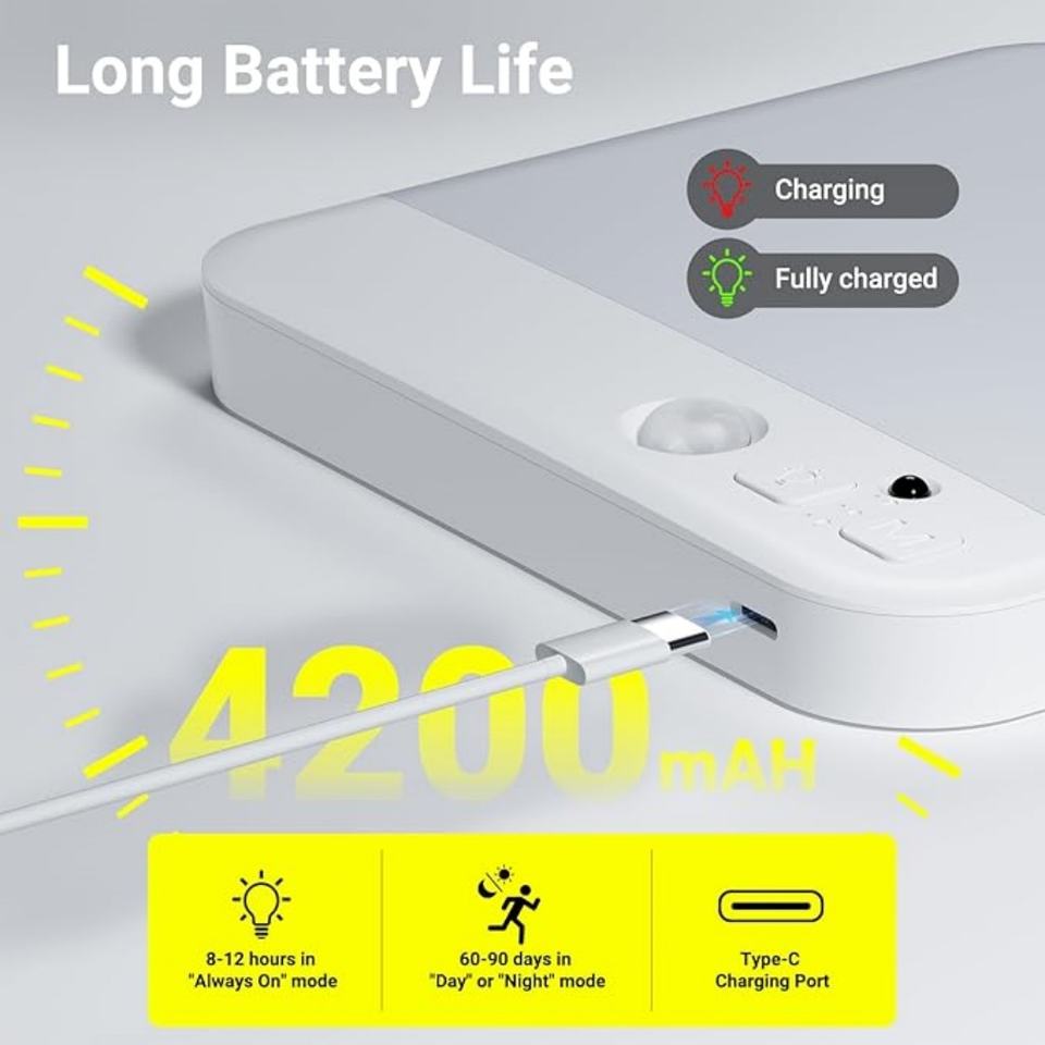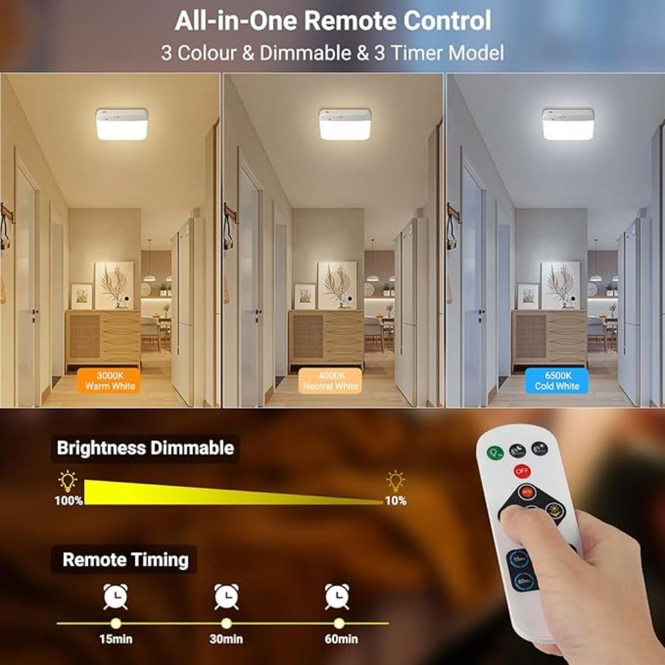 ไฟ LED เพดานหรี่แสงได้พร้อมเซ็นเซอร์ตรวจจับความเคลื่อนไหว รีโมทคอนโทรล USB ตัวเลือก 3000K-4500K-6500K สำหรับทางเดิน บันได ตู้ ชาร์จไฟได้