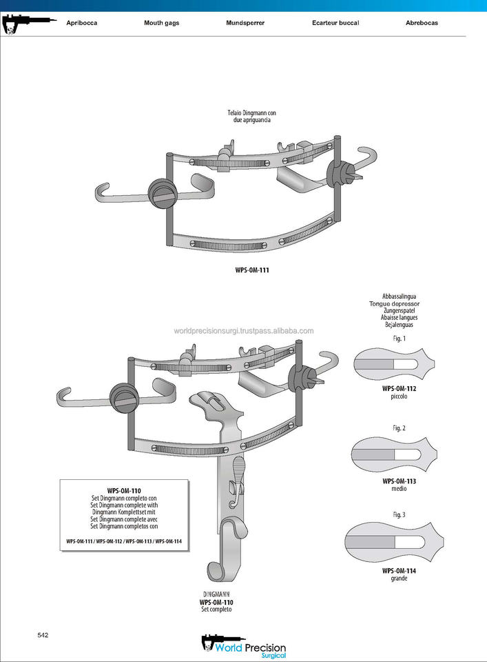 เครื่องมือถ่างปาก Dingman แบบมีใบมีดสองใบต่อแก้ม ทำจากสแตนเลสสตีล สำหรับผ่าตัดทางหู คอ จมูก ใช้ซ้ำได้ - WPS-OM-111