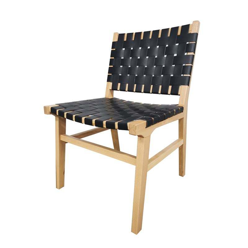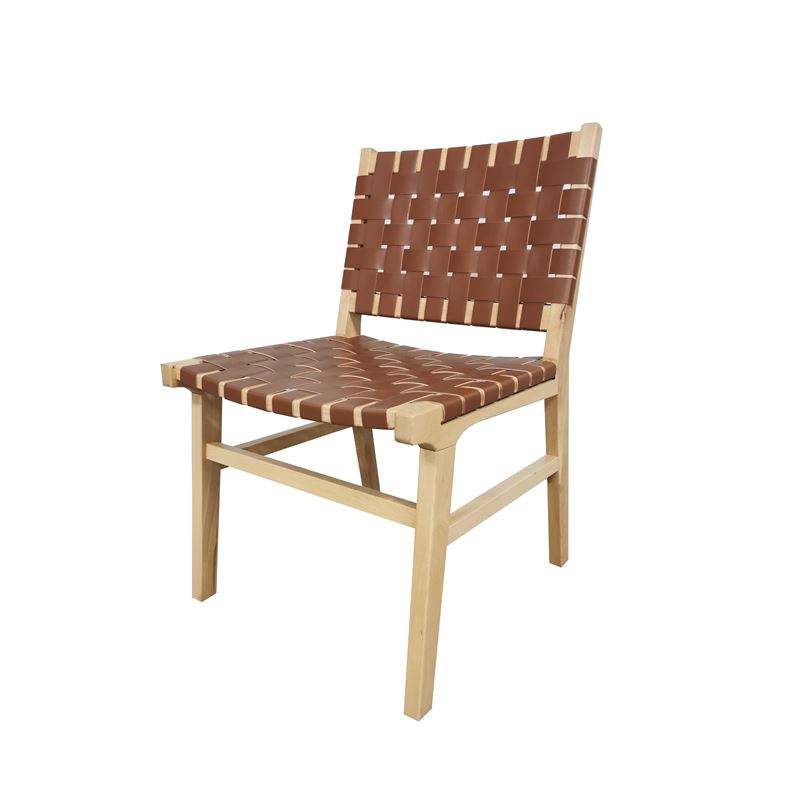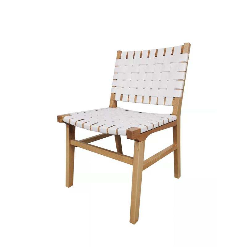 เก้าอี้ทานอาหารโครงไม้สักแท้พร้อมเบาะและพนักพิงหนังสาน สำหรับใช้ภายในและภายนอกอาคาร