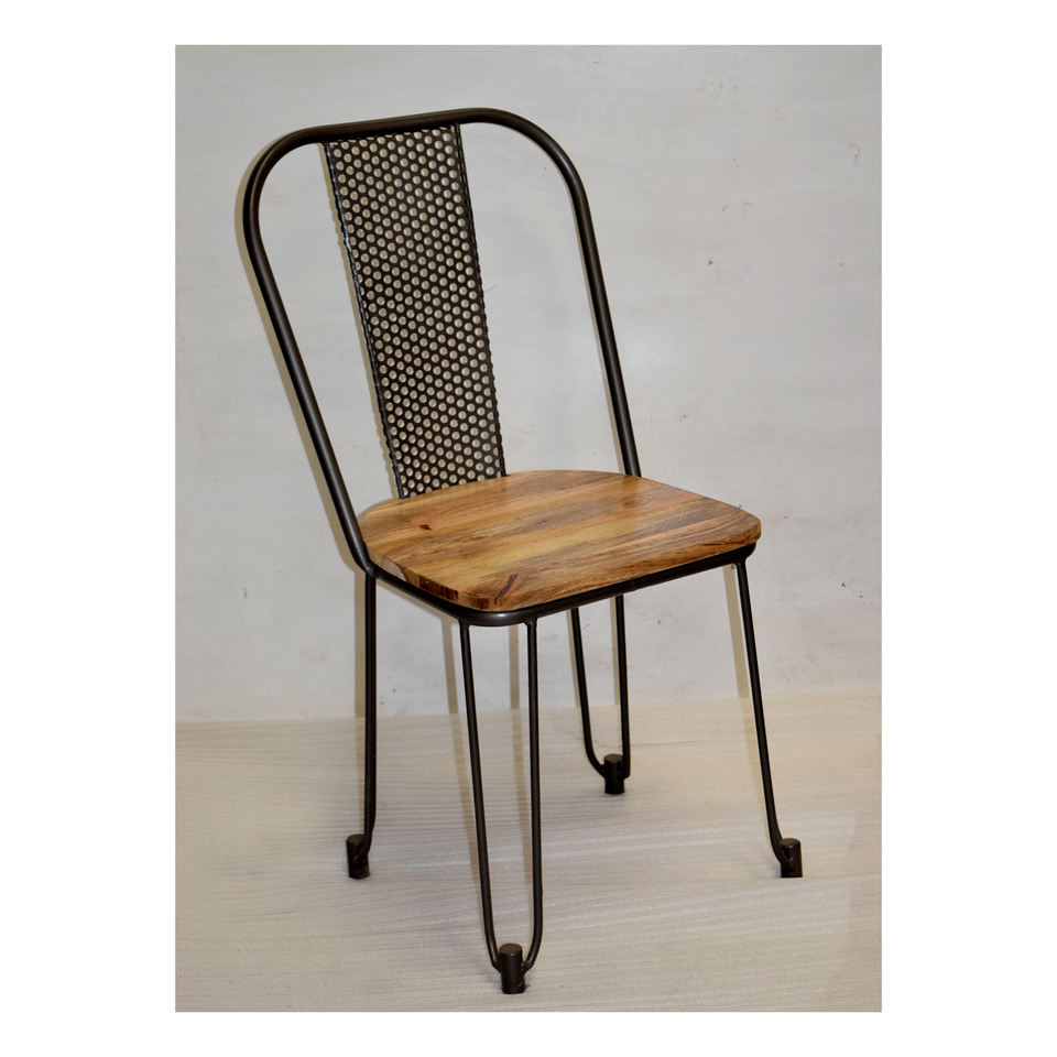 เก้าอี้รับประทานอาหารที่นั่งทำจากไม้หนาพร้อมขาเหล็กสำหรับบ้านร้านอาหารในสวนภายนอกห้องออกกำลังกายใช้ในโกดังเก้าอี้ที่นั่ง