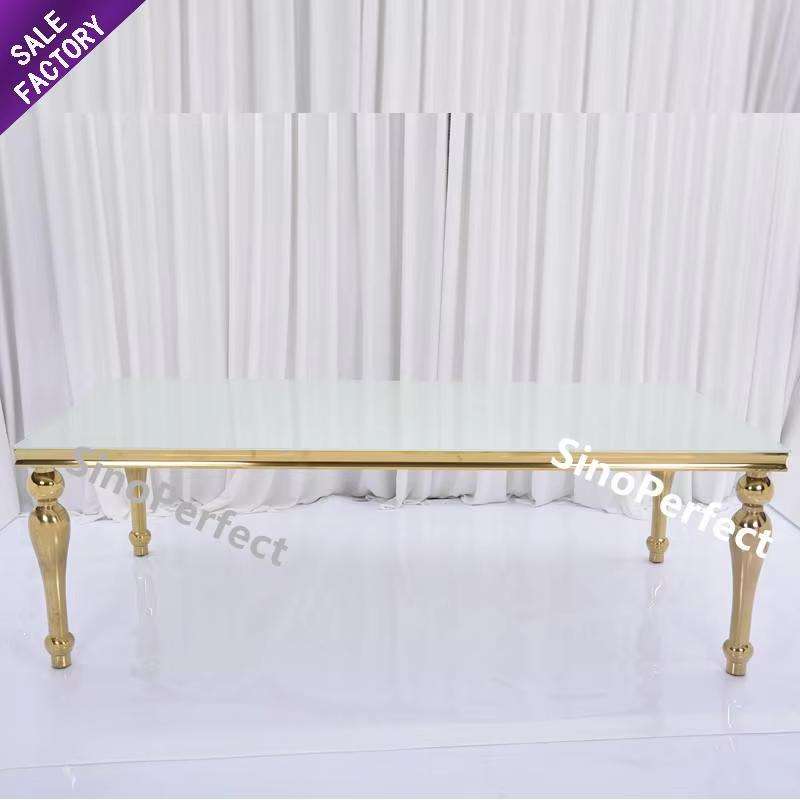 โต๊ะกระจกสี่เหลี่ยมสี่เหลี่ยมสำหรับห้องจัดเลี้ยงทำจากสเตนเลสสตีลทันสมัยหรูหราสำหรับงานแต่งงานของโรงแรม