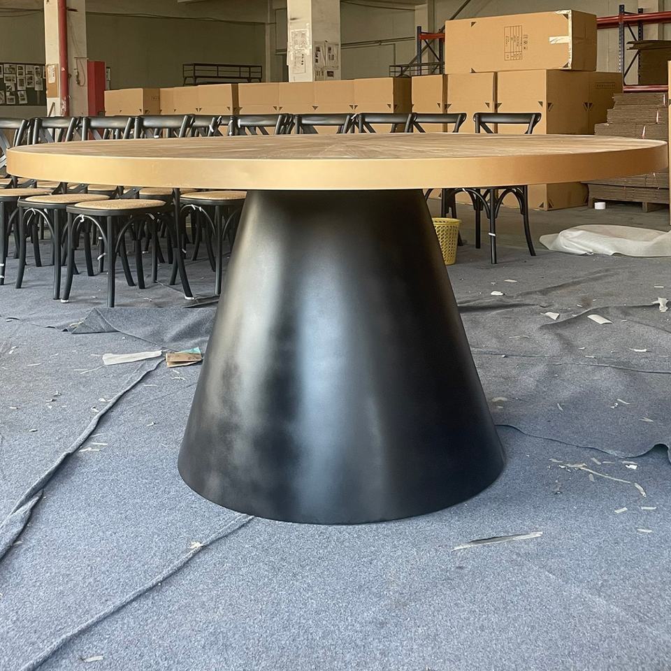 เฟอร์นิเจอร์ห้องรับประทานอาหาร โต๊ะรับประทานอาหารทรงกลมขาตั้งทรงกรวย ไม้เนื้อแข็ง สไตล์มินิมอล 8 ที่นั่ง โต๊ะอาหารโลหะ เฟอร์นิเจอร์สำหรับร้านอาหารและบ้าน