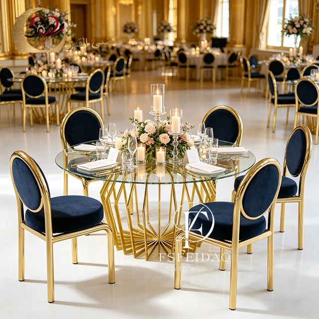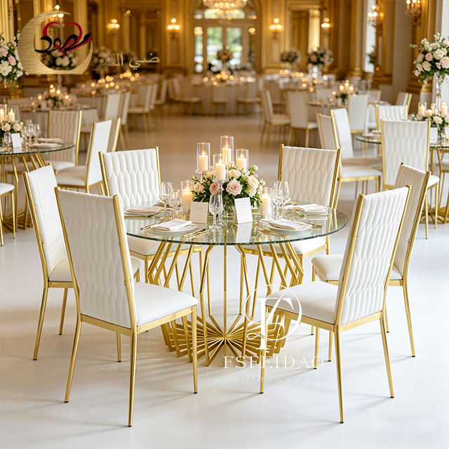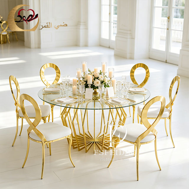 เฟอร์นิเจอร์ห้องอาหาร โต๊ะสี่เหลี่ยมสแตนเลสสีทองทันสมัย พร้อมเก้าอี้สำหรับใช้ในโรงแรม