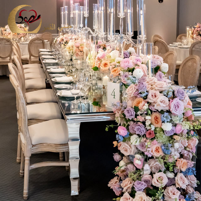 โต๊ะและเก้าอี้ยาวสำหรับร้านอาหารกรอบสแตนเลสห้องรับประทานอาหารงานแต่งงาน