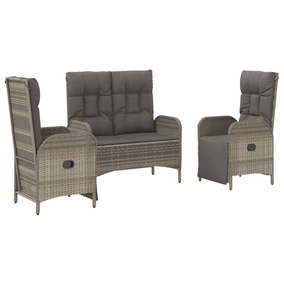 ชุดโต๊ะรับประทานอาหารสำหรับสวน ทำจากหวาย PE สีเทา พร้อมโครงเหล็กเคลือบสีฝุ่นและกระจกนิรภัย ทันสมัยและทนทาน