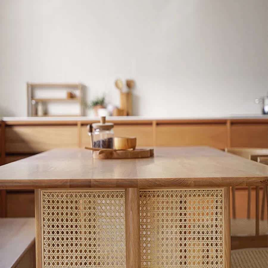 Dining Table High Quality Made of Solid Teak Wood finishing natural wood Frame with Rattan Wicker for Indoor and Outdoor Use.