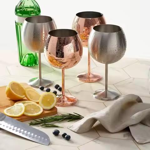 แก้วไวน์โลหะสำหรับโต๊ะอาหาร เหมาะสำหรับใช้ในบ้าน บาร์ ปาร์ตี้ และร้านอาหาร