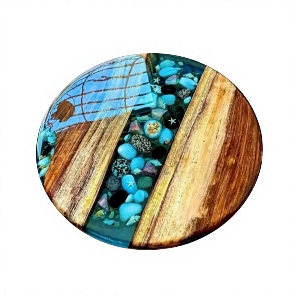 โต๊ะอาหาร/กาแฟไม้กระถินเทศทำมือสไตล์โมเดิร์นหรูหรา ท็อปเรซิ่นอีพ็อกซี่กันน้ำ สำหรับห้องนั่งเล่น เหมาะสำหรับเทศกาลดีวาลี