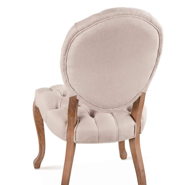 เก้าอี้รับประทานอาหารที่ทำจากโครงไม้สักแข็งพร้อมที่นั่งและพนักพิงหุ้มเบาะสำหรับใช้ในร่ม