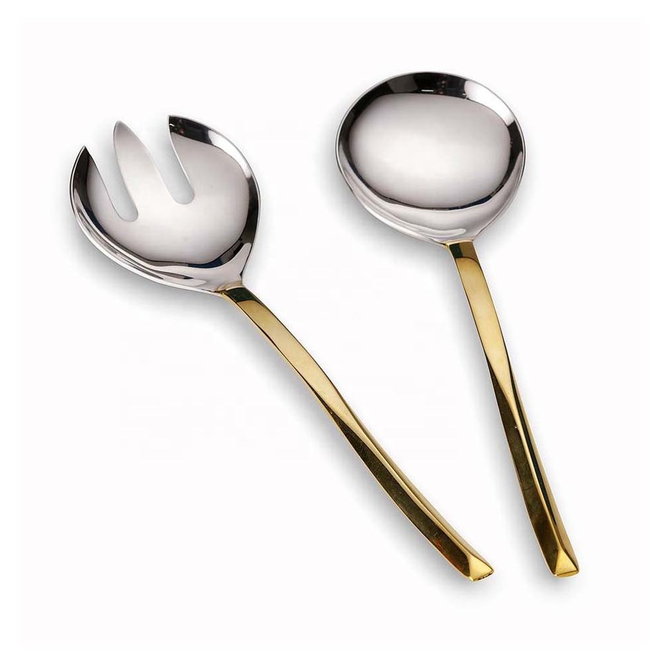 ชุดอุปกรณ์ทำอาหารมื้อเย็นพร้อมที่จับสีทองชุดเสิร์ฟสลัดบาร์ขัดเงาสีเงิน